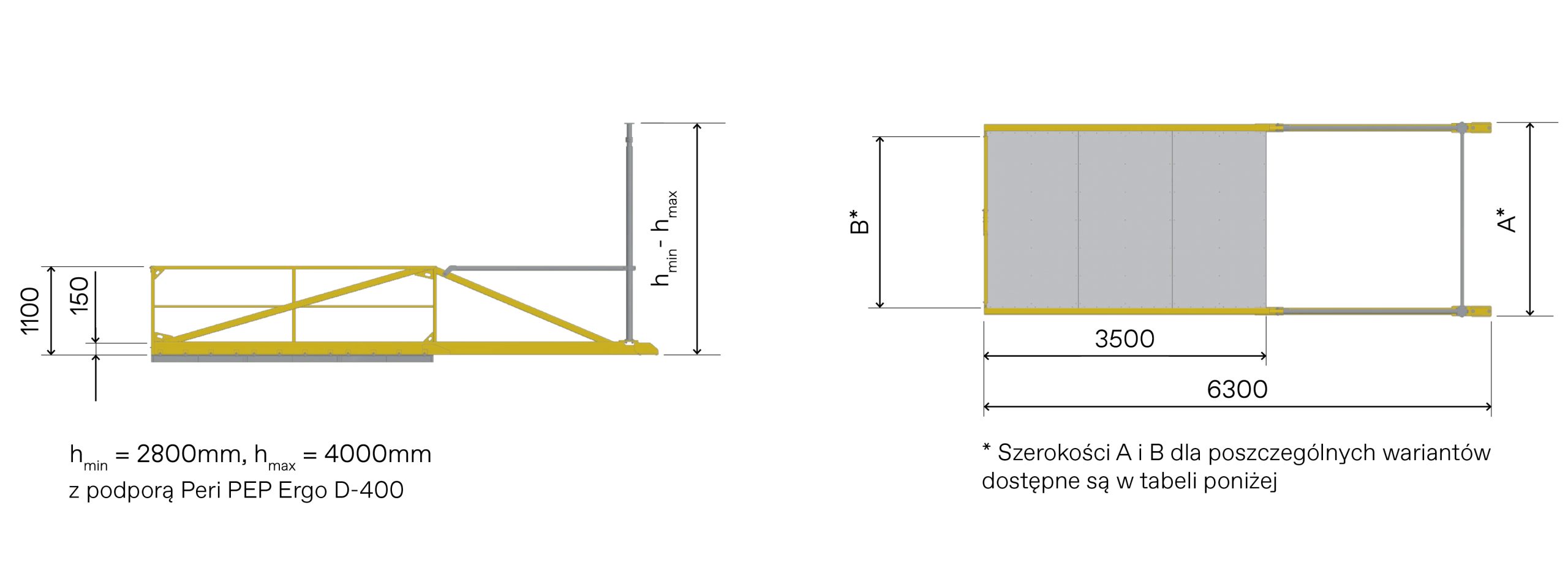 | Szerokość podestu [A] | 1456 | 1706 | 2403 |